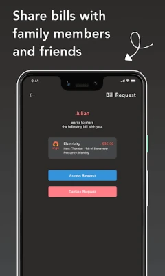 Have common bills with your flatmates or family? Create a shared bill so everyone is notified on time. Amounts can be personalised as well.