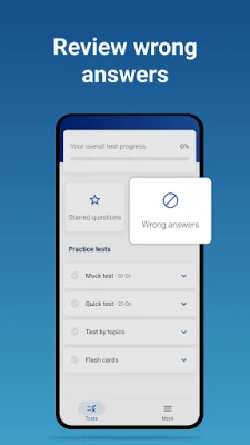 In addition, the app features sections for starred questions and wrong answers. By starring certain questions during your practice tests, you can focus on them later.